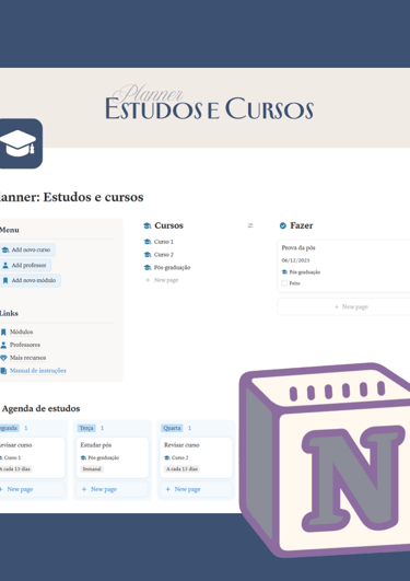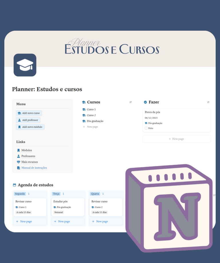 Organize todos os seus cursos, módulos e resumos em um só lugar.
